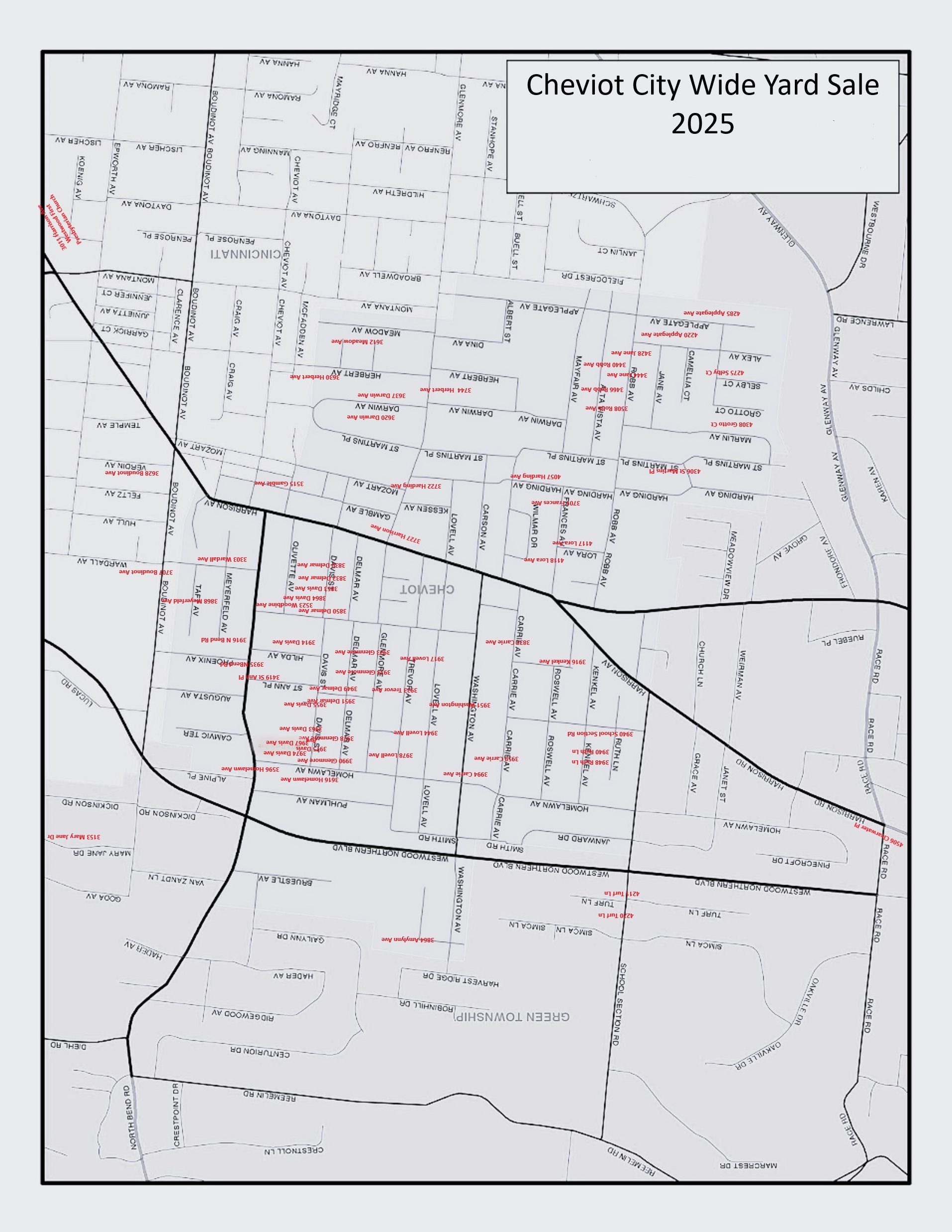 Cheviot City Wide Yard Sale Saturday June 7th 8am-3pm